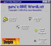 Guru's GRE Wordlist is a charityware program. You are allowed to use it for an unlimited period of time, and you may freely distribute it, provided you register it (Just an email is enough) and YOU DONATE TO A REGISTERED CHARITY AN AMOUNT THAT YOU FEEL FAIR.
